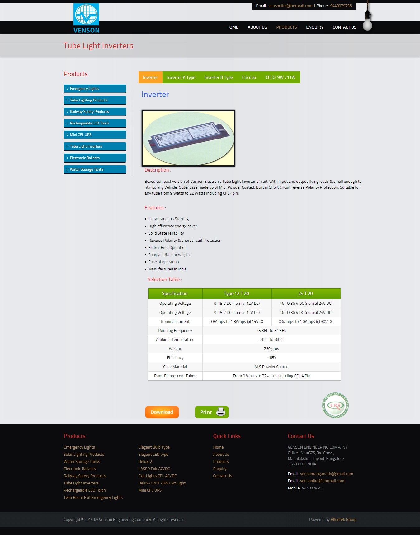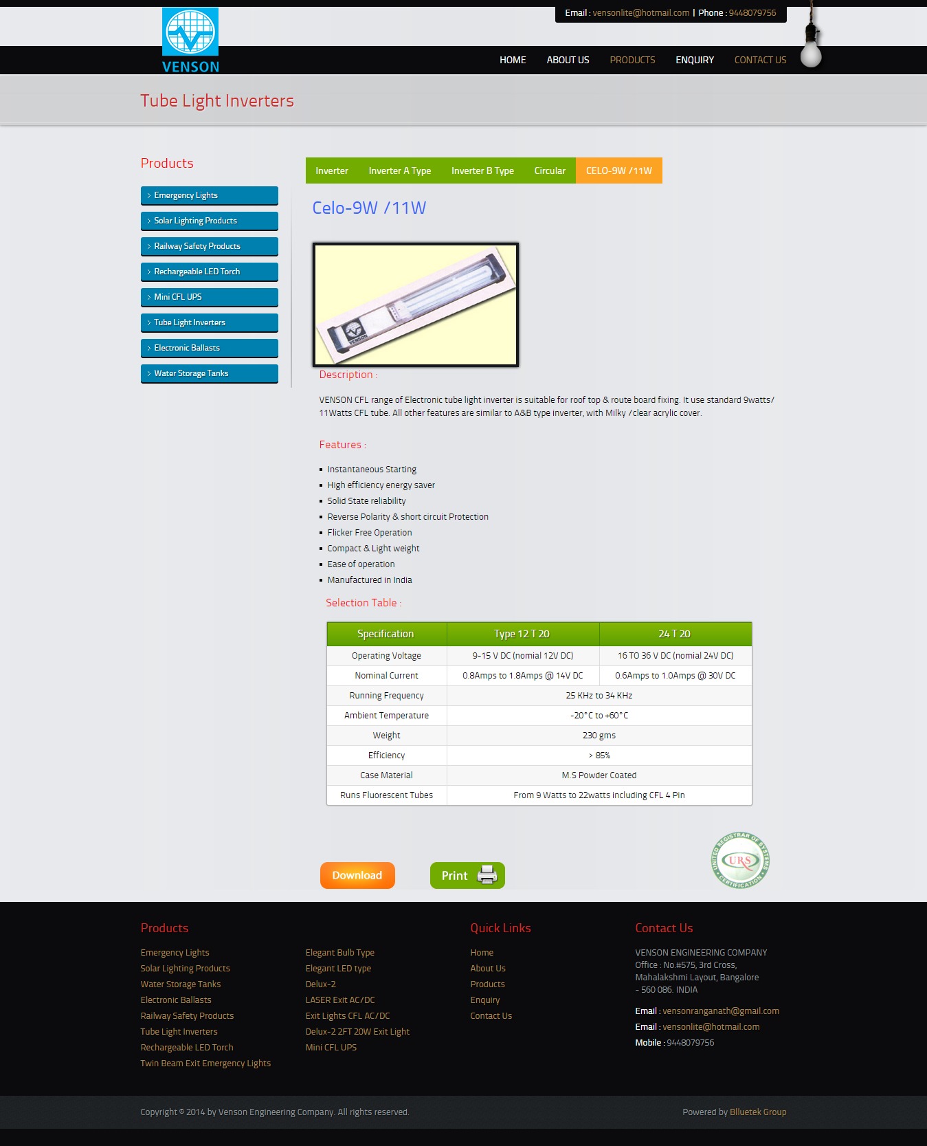 VENSON CFL range of Electronic tube light inverter is suitable for roof top & route board fixing. It use standard 9watts/ 11Watts CFL tube. All other features are similar to A&B type inverter, with Milky /clear acrylic cover.